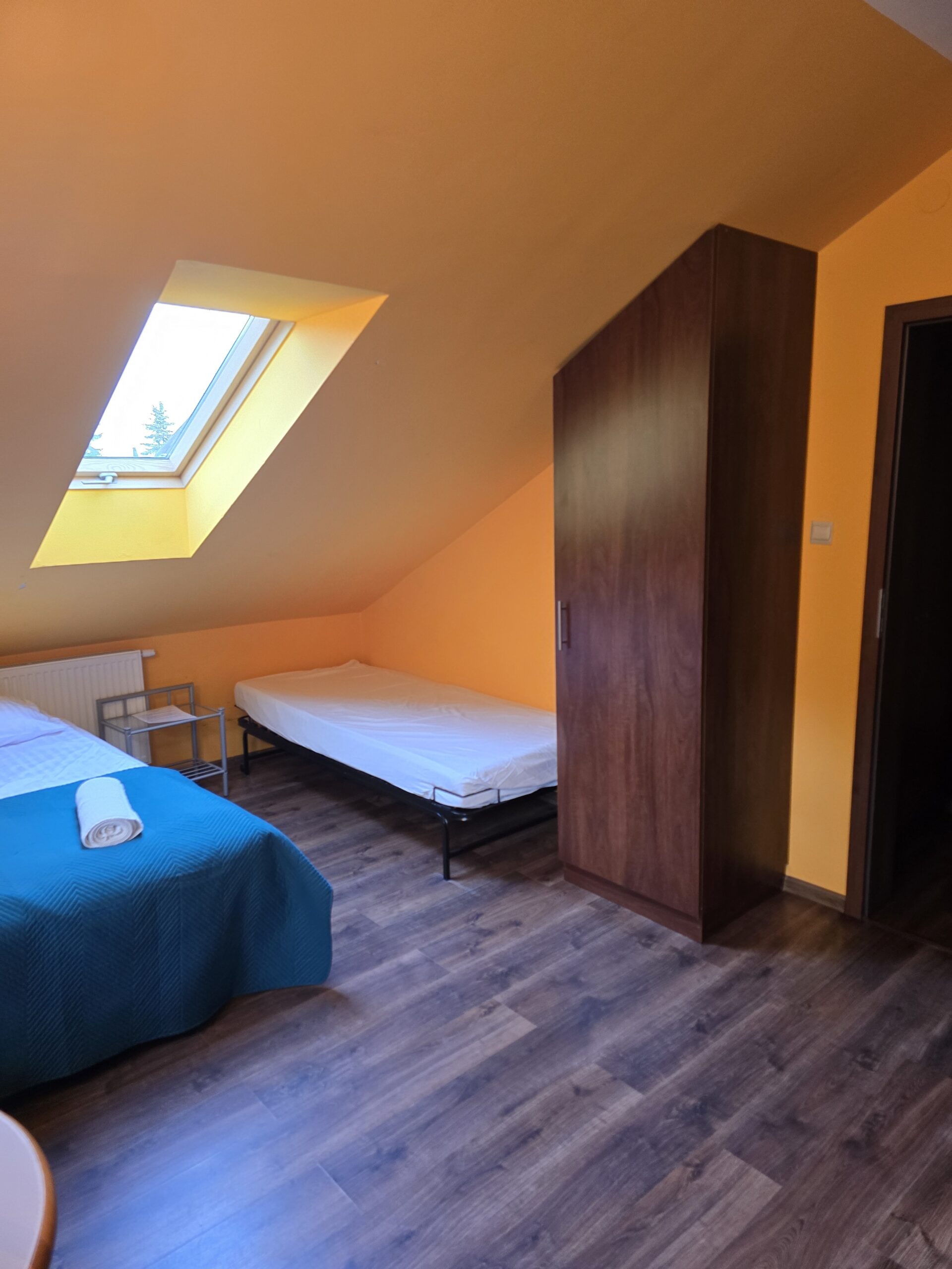 Pokój 3-osobowy typu ekonomiczny to komfortowa przestrzeń dla rodziny lub grupy przyjaciół planujących noclegi w Kątach Rybackich. Wnętrze zostało zaprojektowane tak, aby zapewnić wygodę i swobodę podczas wakacyjnego pobytu na Mierzei Wiślanej.